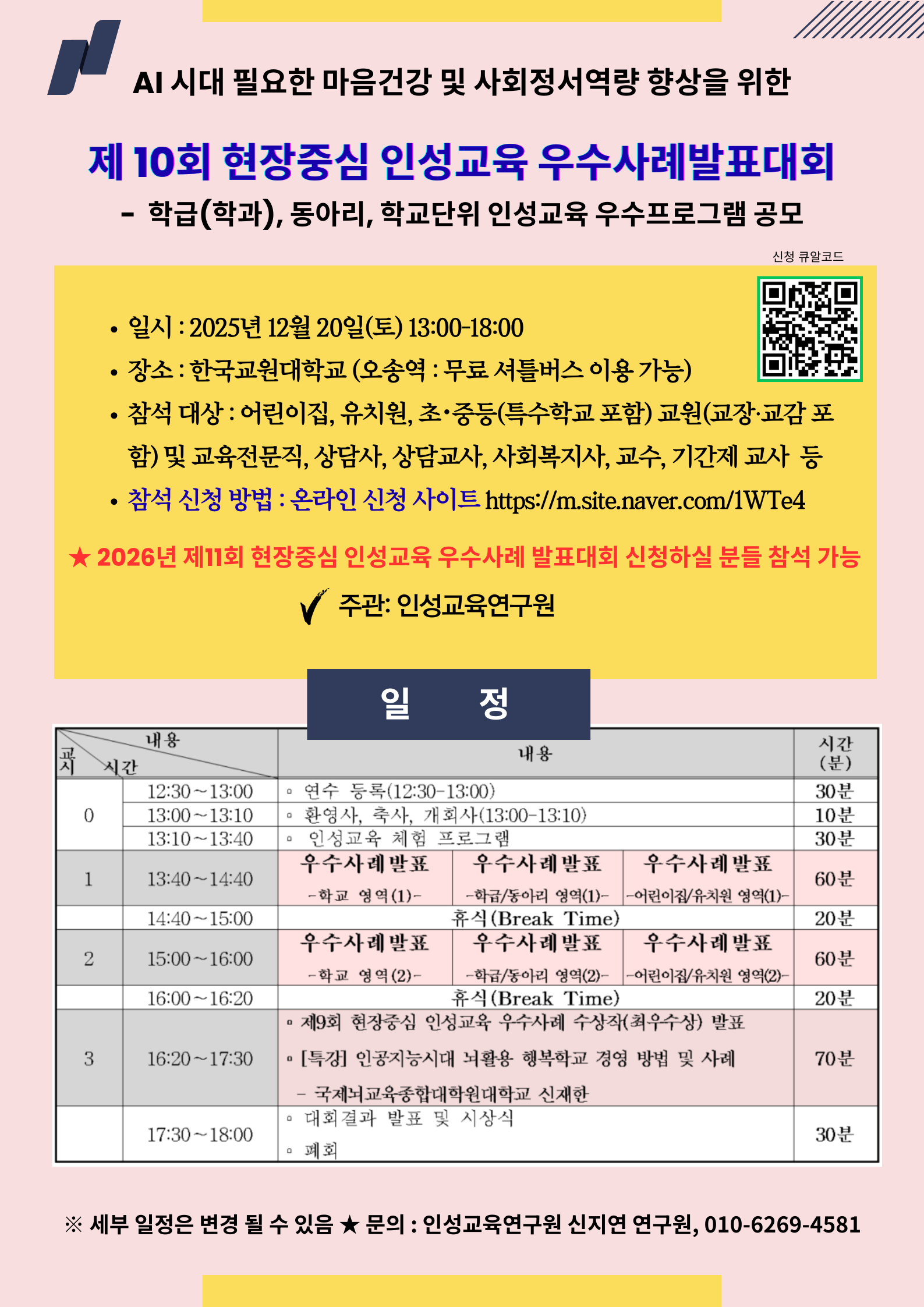 ¡ÙÀΰøÁö´É ½Ã´ë, Á¦10ȸ ÇöÀåÁ᫐ Àμº±³À° ¿ì¼ö»ç·Ê¹ßÇ¥´ëȸ Âü¼® ¾È³»